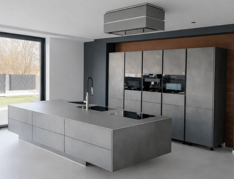 Nolte-Küche mit Kochinsel in Betonoptik komplett montiert – von der Planung bis zur finalen Justierung.